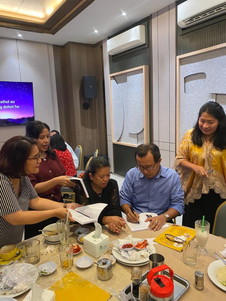 Menariknya, para Guru Sekolah Minggu meminta langsung kepada penulis agar menandatangani buku tersebut sekaligus menuliskan pesan dan kata-kata mutiara di halaman depan sebagai kenang-kenangan.